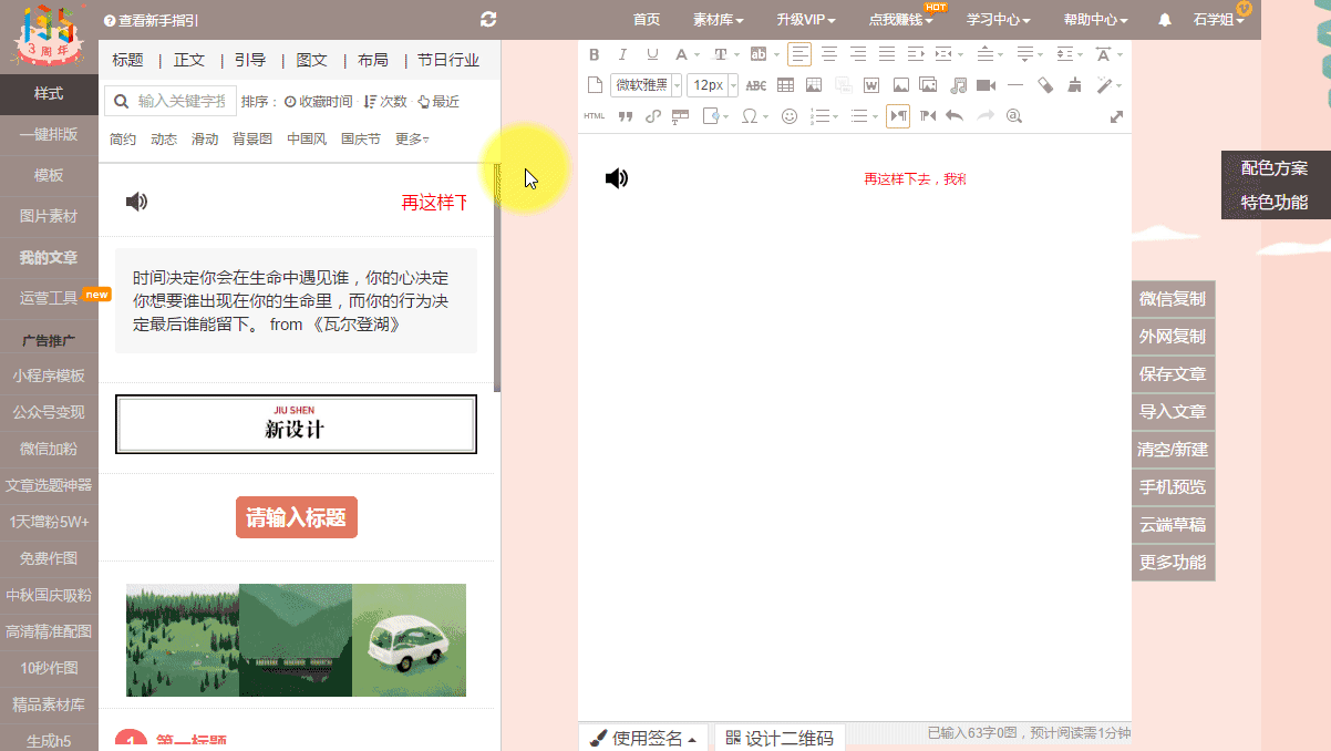 領(lǐng)先的在線圖文編輯平臺(tái)原創(chuàng)樣式素材,一鍵套用