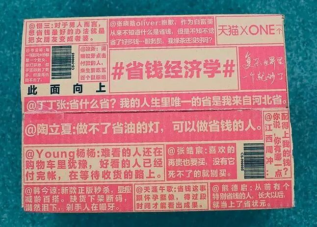 還有天貓的包裝,關于如何看待省錢這個話題: