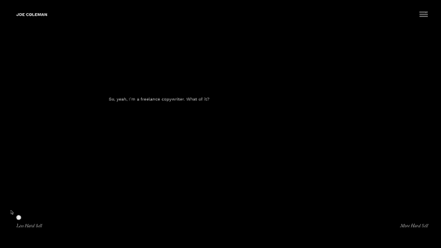 Joe Coleman 是一位自由撰稿人,他在自己的網站上僅使用文本來呈現內容。這個網站的特點是借助交互性元素,以純文本的視覺設計和交互來吸引用戶。