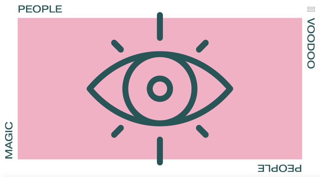 在創(chuàng)意機構 Magic People Voodoo People 的網站上,則在四角上使用了水平和垂直的文本來昭示它的名稱: