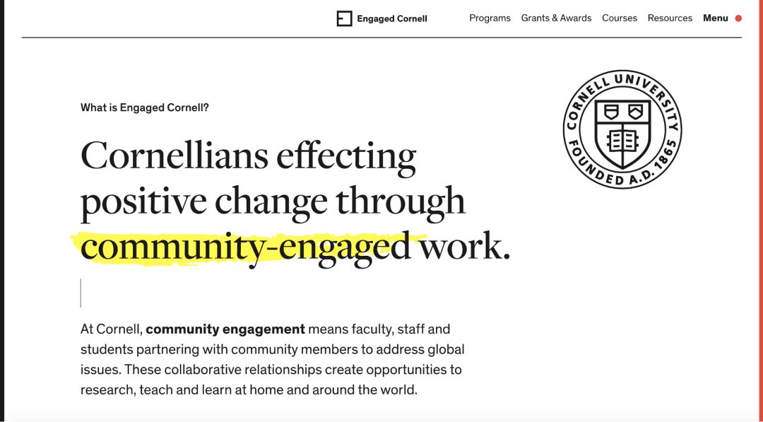 康奈爾大學的網頁同樣使用熒光黃色來高亮關鍵詞,讓訪客注意到關鍵的文本。
