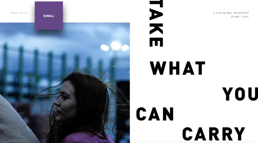 比如下面的這個網站,它是電影 Take What You Can Carry 的官方網站,電影的名字被拆分開單獨排版:
