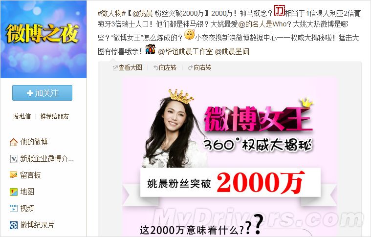 2012年“微博女王”姚晨粉絲突破2000萬