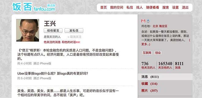 王興的飯否首頁