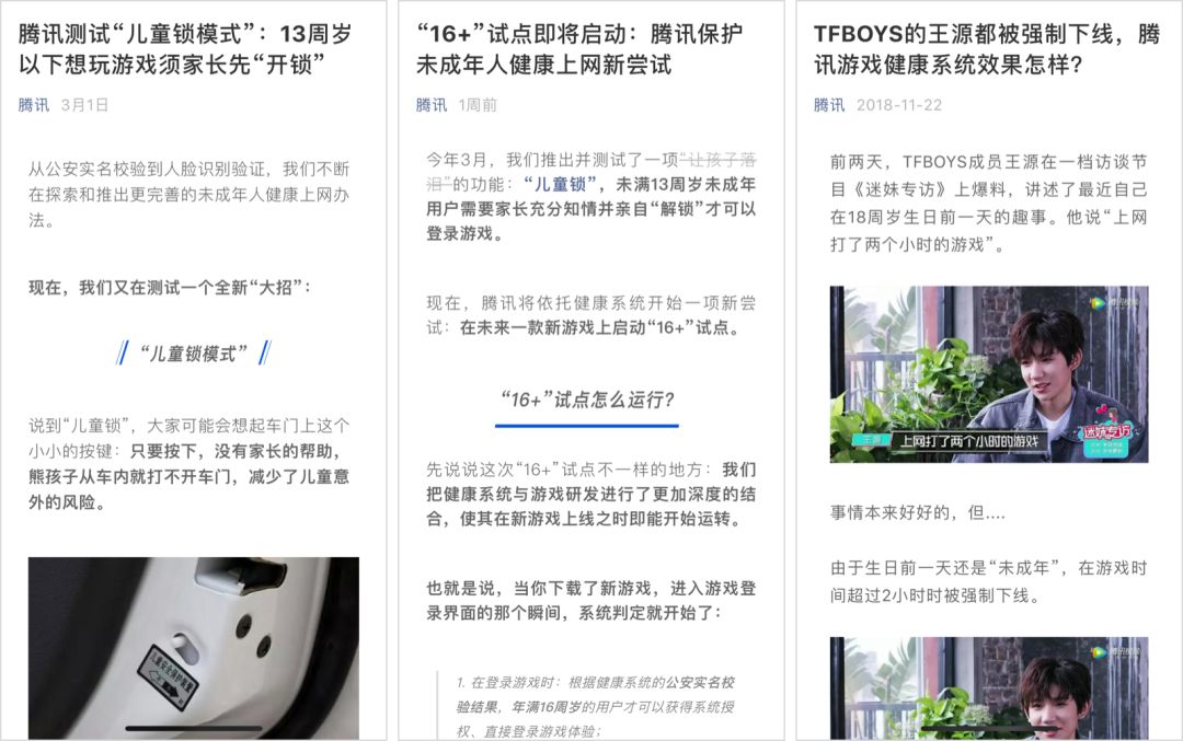 緊接著《王者榮耀》馬上啟動(dòng)成長(zhǎng)守護(hù)平臺(tái),之后不斷更新“賬號(hào)時(shí)長(zhǎng)共享”新功能、人臉識(shí)別驗(yàn)證、最嚴(yán)實(shí)名策略、“健康系統(tǒng)”、“兒童鎖模式”,甚至開始嘗試“16+”(16 以上未成年限玩 2 小時(shí))……這期間還報(bào)道了 TFBOYS 王源都被強(qiáng)制下線。