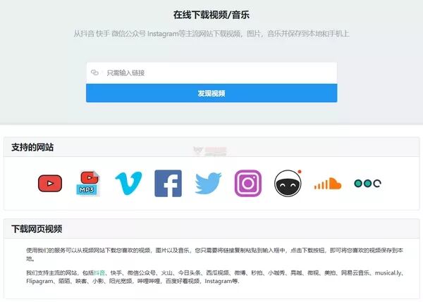 Pickfrom是一款支持從主流網(wǎng)站下載圖片、視頻、音樂的網(wǎng)站,包括抖音、快手、西瓜視頻、微博、Instagram、網(wǎng)易云音樂、公眾號、嗶哩嗶哩等等。