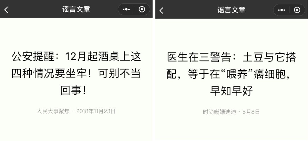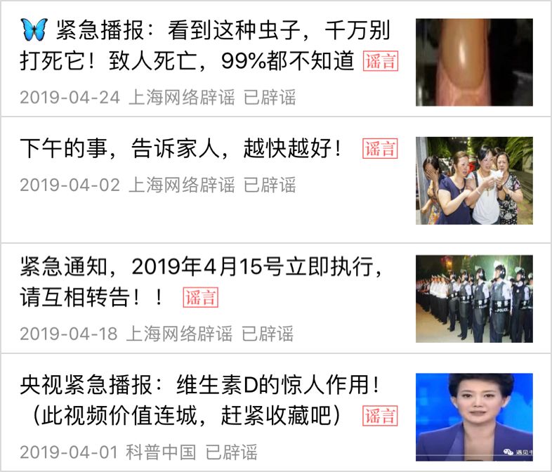 這其中的危險(xiǎn)包括自然災(zāi)害、社會(huì)治安、疾病健康、食品安全、財(cái)產(chǎn)安全。比如 2012 年是世界末日,人體需要定期排毒,卵巢需要保養(yǎng),多吃水果會(huì)導(dǎo)致兒童反復(fù)咳嗽,辟谷能治好糖尿病,吃豆腐會(huì)得結(jié)石、微信付錢(qián)會(huì)被隔空盜刷……只有你想不到,沒(méi)有謠言涉及不到。