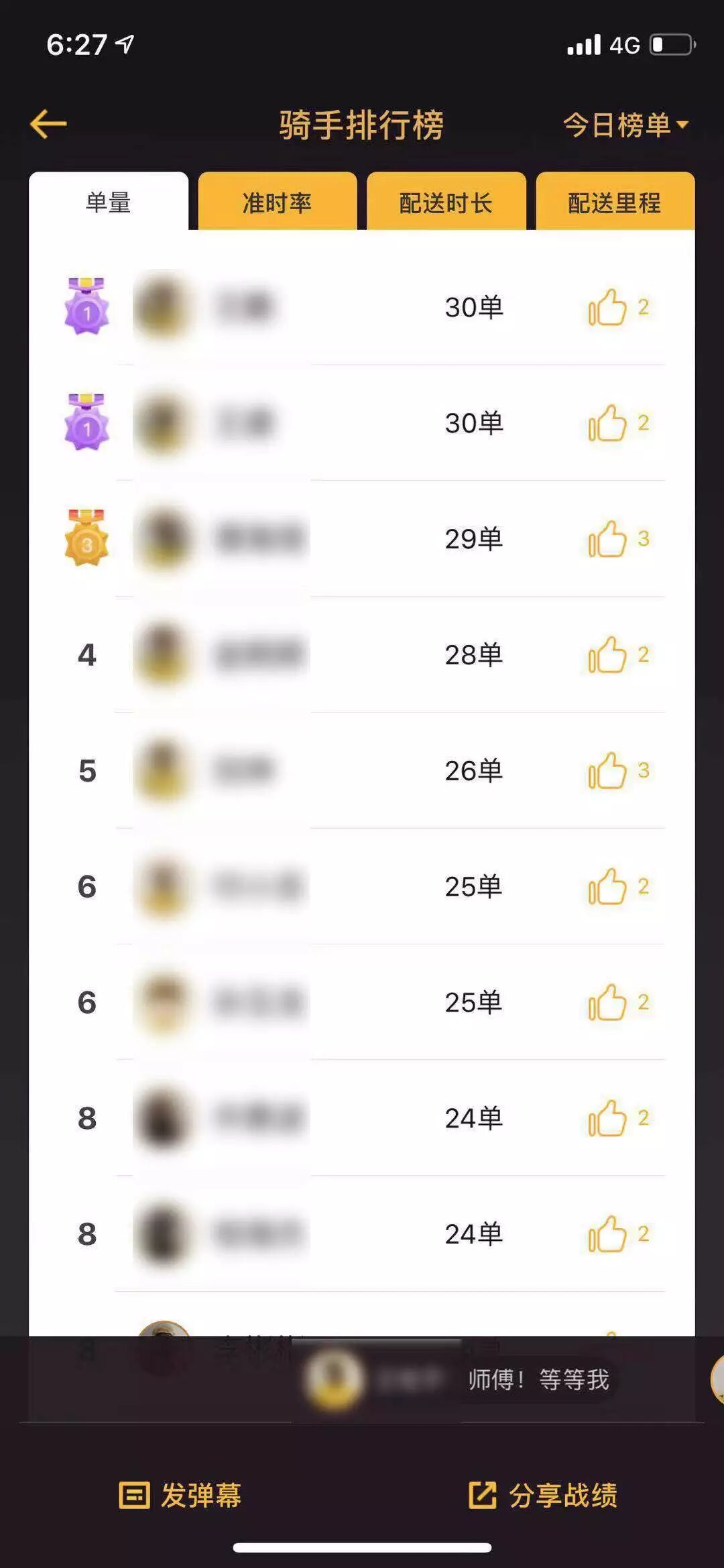 我們采訪的外賣小哥目前是青銅 2 級,完成了 300+ 單。