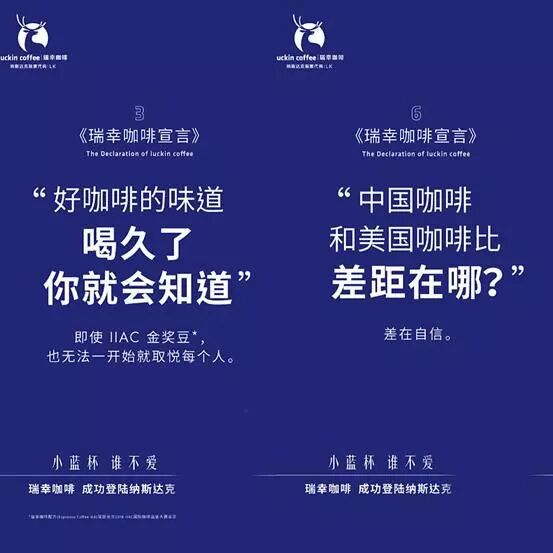 瑞幸咖啡上市宣言的這6句文案,老賊個(gè)人是非常喜歡的,不是在于文字,而是在于打法。瑞幸CEO 錢治亞都拿到納斯達(dá)克上市現(xiàn)場(chǎng)去說了,可見這背后策略意義肯定高于文案本身。