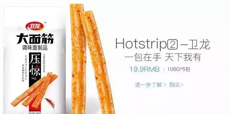 衛(wèi)龍辣條之前淘寶旗艦店更新驚為天人,完全不同于同類產(chǎn)品的風(fēng)格,濃濃的蘋果風(fēng)和過去消費(fèi)者對(duì)于辣條的認(rèn)知形成強(qiáng)烈反差,把熟悉的場(chǎng)景陌生化,太能抓眼球了。